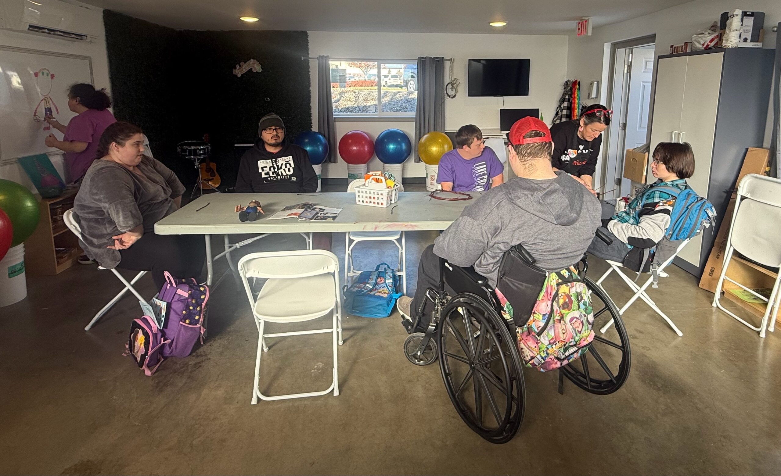 "Courageous Creators" working on art projects in the new Whispering Woods art studio at Brave Warriors NCW.