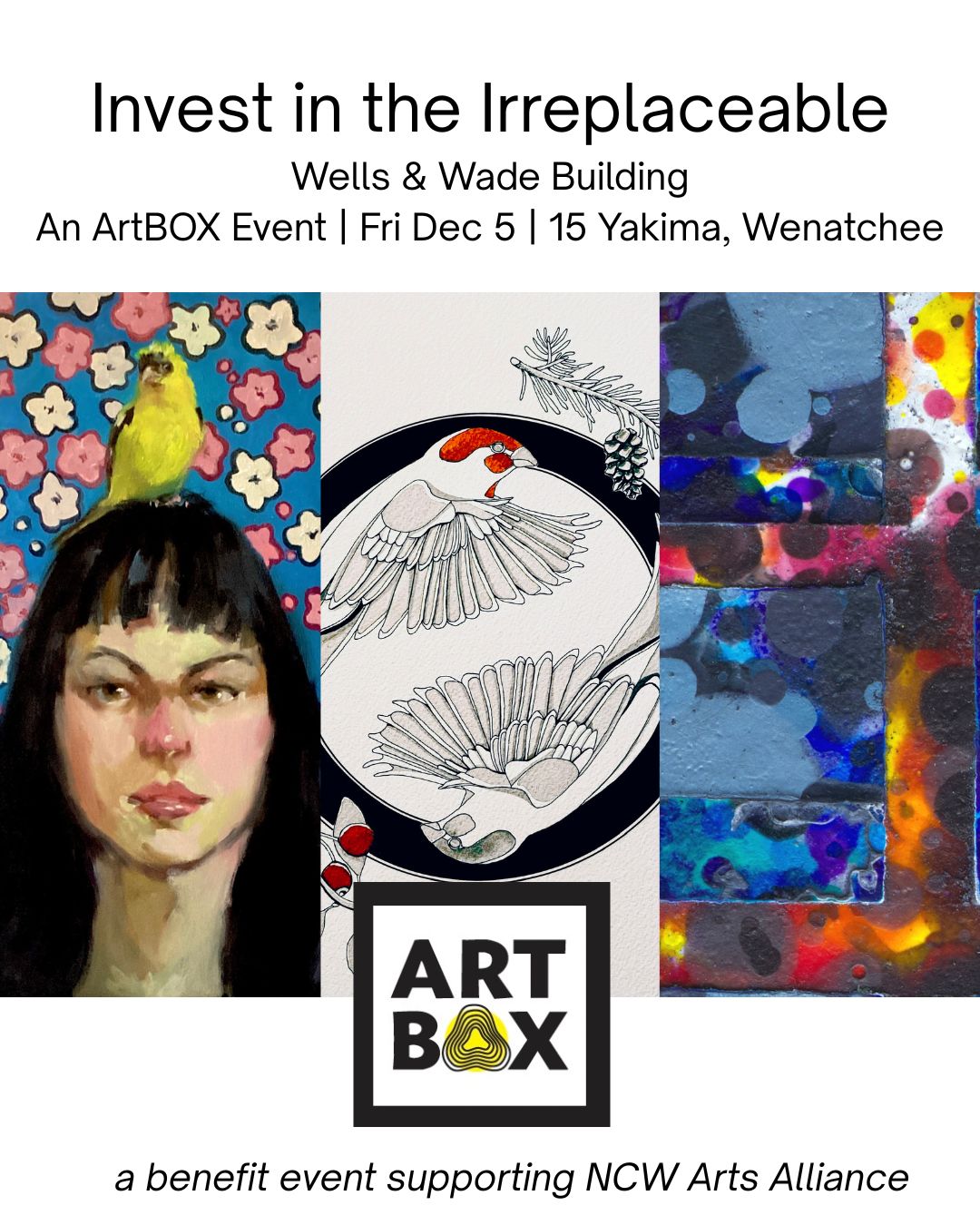 The Wells & Wade Forge Collection: A Warehouse Showcase• BENEFITING NCW ARTS • Friday, December 5, 20253:00 pm – 9:00 pm 15 Yakima Street • Wenatchee, WA ArtBox • Wells & Wade is a 21+ Event YOUR ART LEGACY & INVESTMENTFor the top buyer, collecting original art is an essential part of shaping one’s personal […]