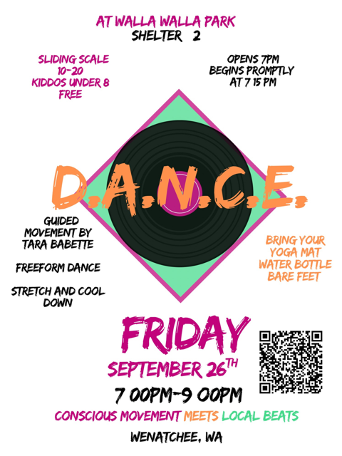 D.A.N.C.E Drop In, Activate, Navigate, Communicate, Elevate to this bi-weekly D.A.N.C.E event. With guided movement facilitated by Tara Babette, beats by North Central Washington electronic DJs with a stretch and cool down. D.A.N.C.E on September 26th will be the last party out at Walla Walla Point Park before we take this event inside for the […]